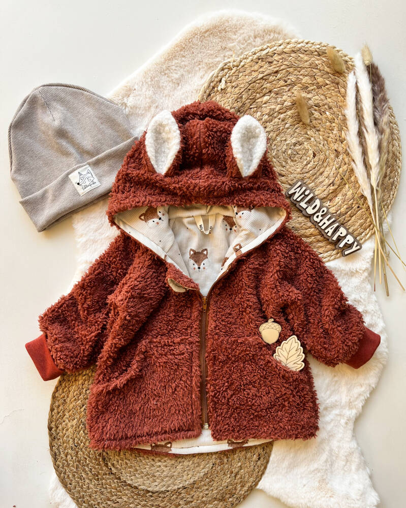 Unsere Teddyfleece‑Jacken, Overalls und Westen werden liebevoll handgemacht und bestehen (bis auf eine Ausnahme) aus 90 % Baumwolle – weich, atmungsaktiv und perfekt für kleine Abenteurer.